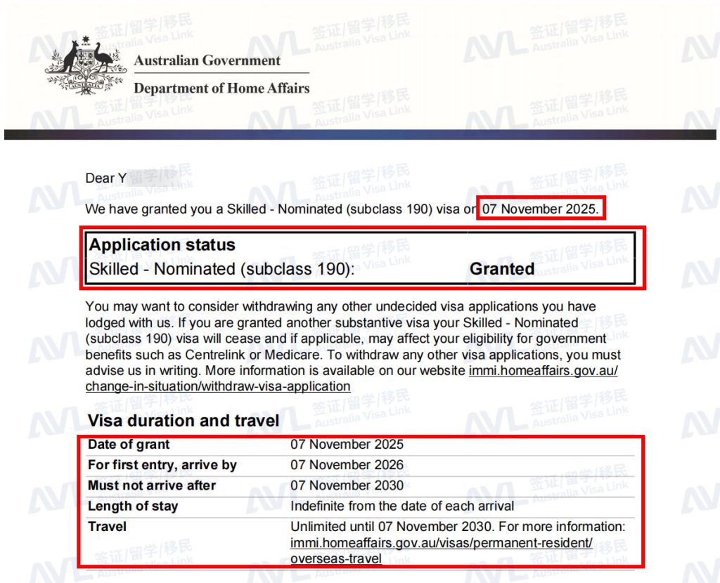 恭喜客户Y和家人成功获得澳洲MINT项目190签证