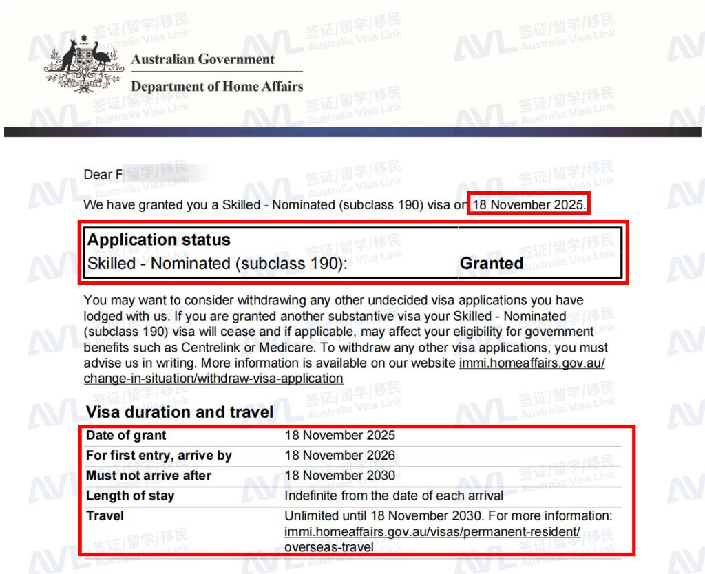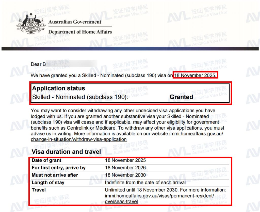 恭喜客户Y和家人顺利获批澳洲MINT项目190签证