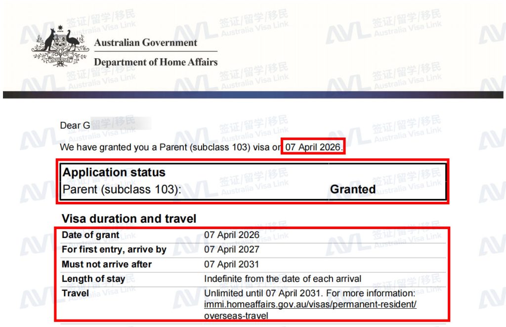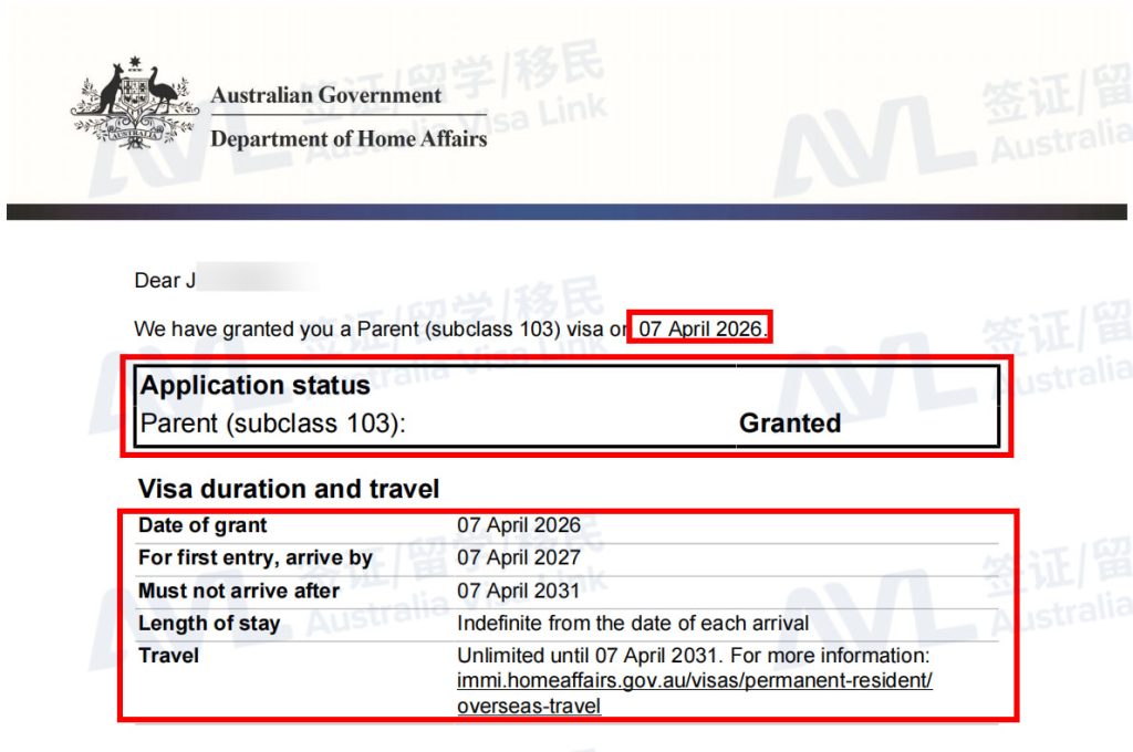 恭喜客户J和配偶成功拿到澳洲103父母永居签证