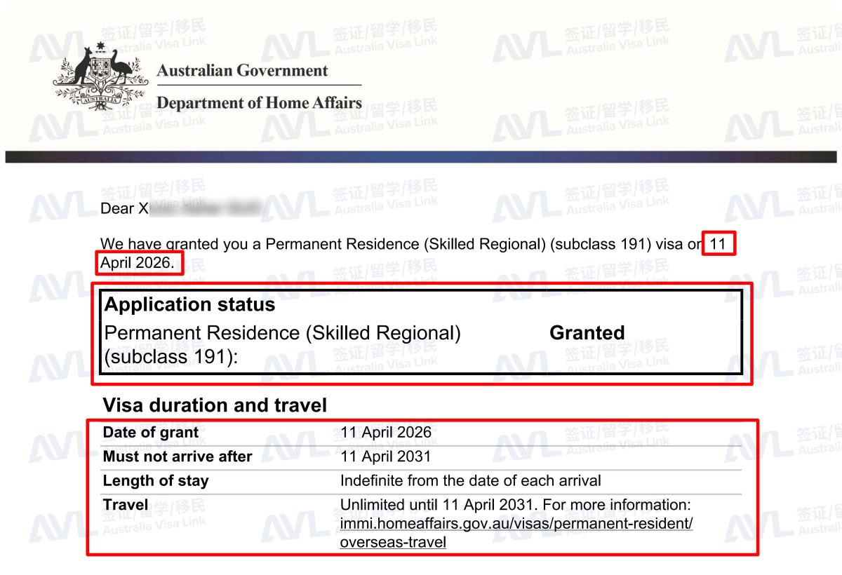 恭喜客户X成功获得澳洲100境外配偶永居签证