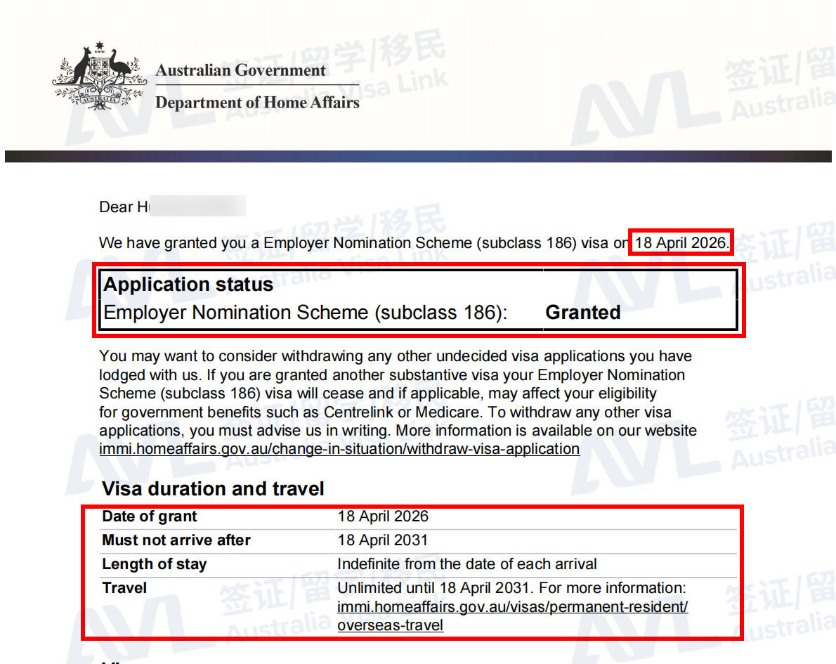 恭喜客户S和家人丝滑拿到澳洲186雇主担保签证