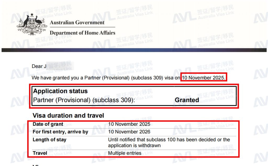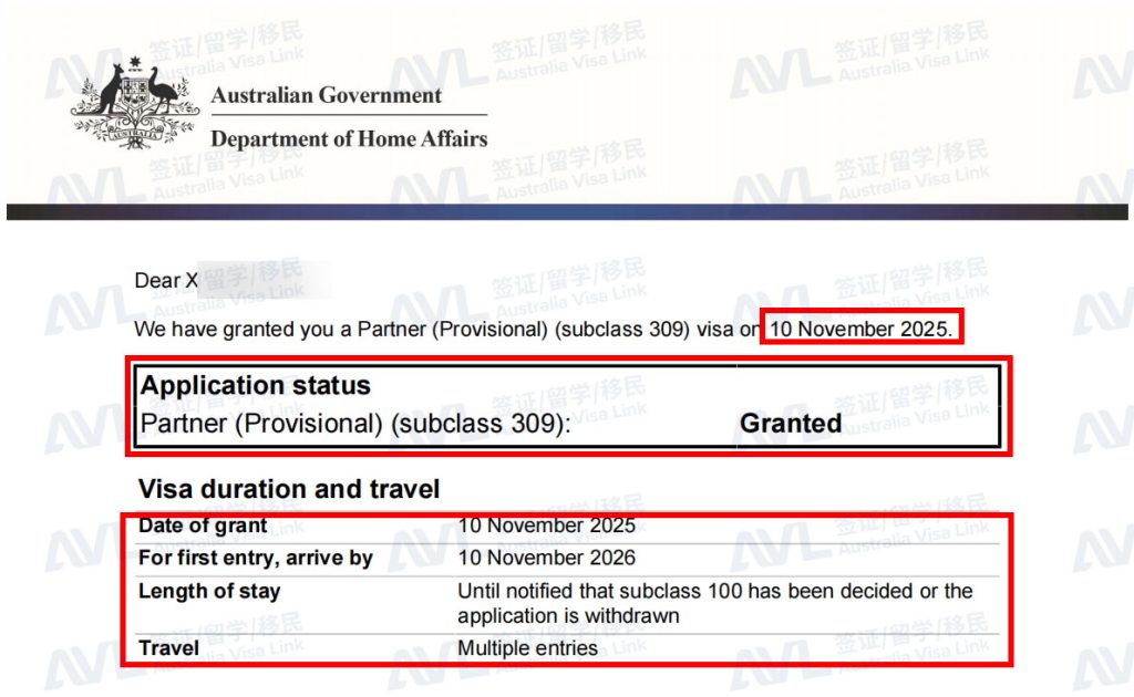 恭喜客户X和家人顺利拿到澳洲309境外配偶签证