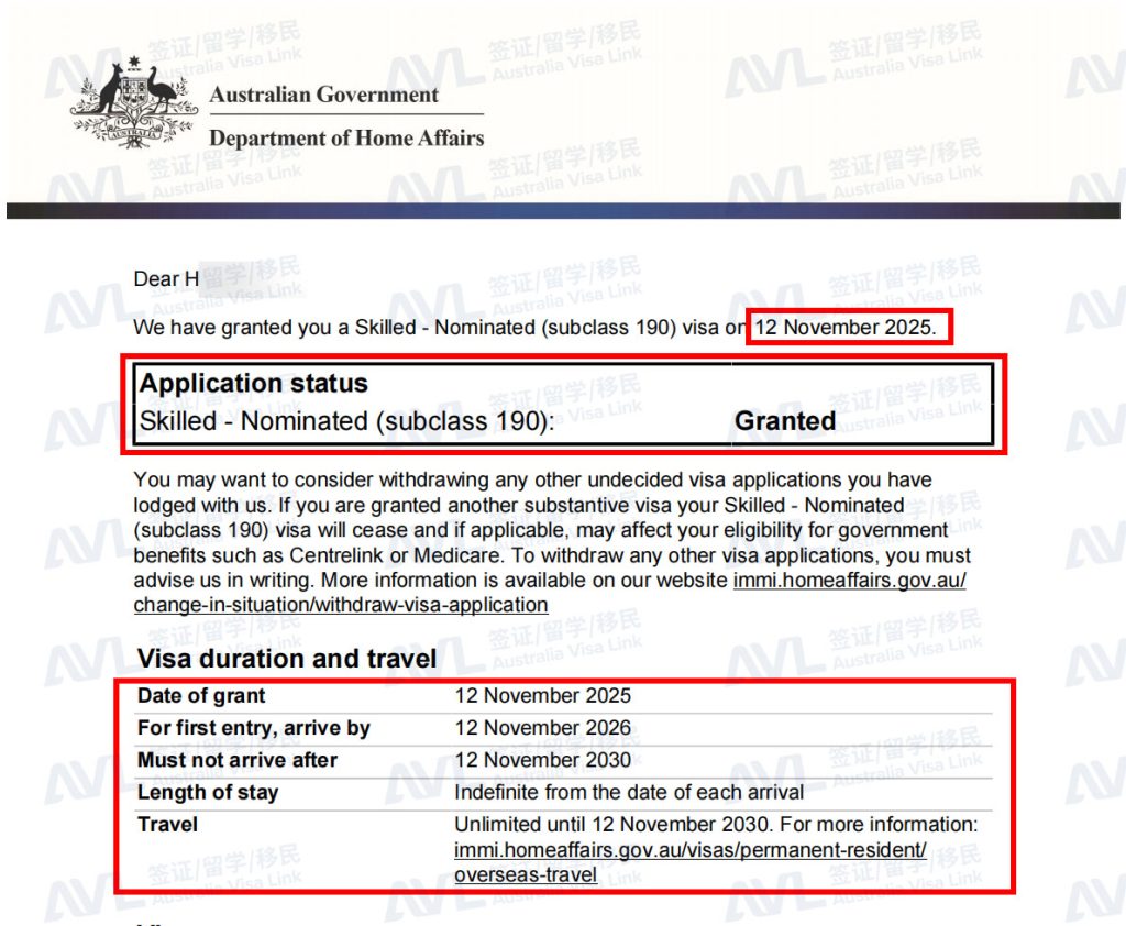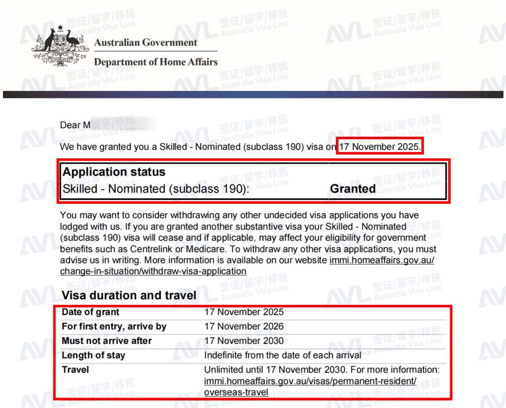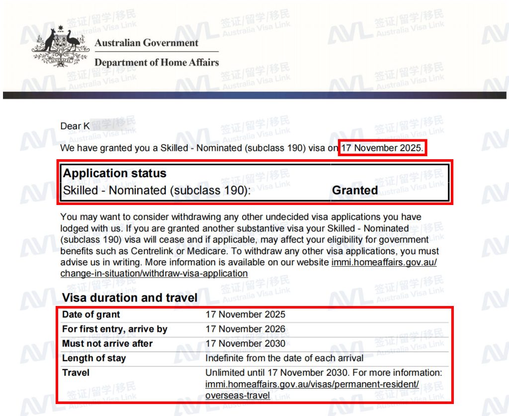 恭喜客户K和家人顺利拿到澳洲MINT项目190签证